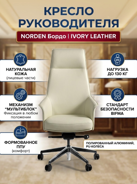 Кресло для руководителя Norden Бордо leather - Обзор ТОП-10 лучших ортопедических кресел 2025 🏆: Обзор и рейтинг