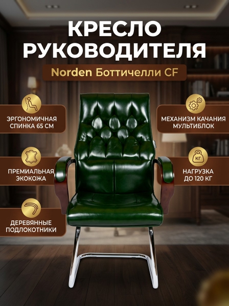 Кресло офисное Norden Боттичелли CF - ОписаниеСомневаетесь? - Посмотрите рейтинг ТОП-10 по категории «Ортопедические кресла»Высококачественное, изящное кресло для руководителя, выполненное в классическом дизайне. Деревянные подлокотники с мягкими накладками, обитыми экокожей премиум. Высокая спинка имеет эргономичную форму и отличается удобством посадки. Максимальная нагрузка 120 кг.