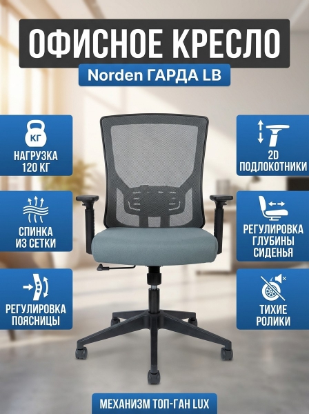 Кресло офисное Norden Гарда LB (черный пластик / серая сетка / серая сидушка) - Преимущества
