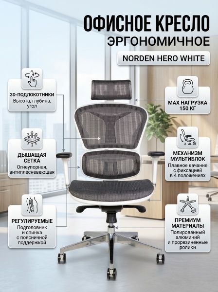 Геймерское кресло Norden Hero white - Обзор ТОП-10 лучших ортопедических кресел 2025 🏆: Обзор и рейтинг