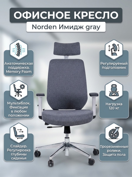 Кресло офисное Norden Имидж gray 2 - Обзор ТОП-10 лучших ортопедических кресел 2025 🏆: Обзор и рейтинг