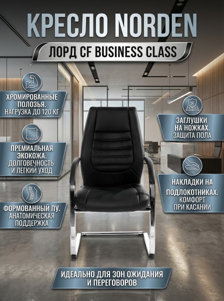 Кресло офисное Norden Лорд CF - ОписаниеСомневаетесь? - Посмотрите рейтинг ТОП-10 по категории «Ортопедические кресла»Кресло для зон ожидания Business class. Материал высококачественная экокожа. Сиденье и спинка формованное PU высокой плотности. Полозья хромированные. Накладки из эккокожи. Углы и конечные элементы у полозьев закрыты пластиковыми заглушками.