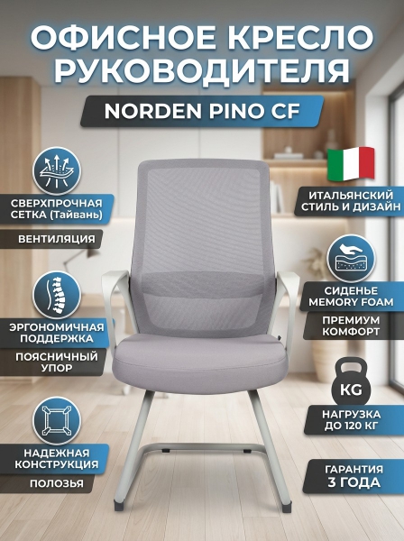 Кресло офисное Norden Pino CF - ОписаниеНовая итальянская серия кресел совместного производства. Кресла- представляют собой итальянский стиль, оригинальный дизайн и высокую надежность. Спинка выполнена из сверхпрочной сетки (производство Тайвань), Сиденье - обивка ткань разных цветовых решений с наполнителем memory foam. Кресло оснащено Газ-лифтом - BIFMA SGS. Нагрузка 120 кг. Гарантия производителя 3 года.