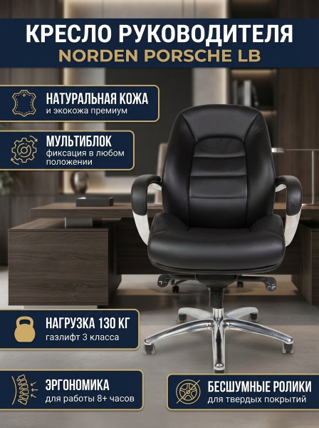 Кресло офисное Norden Porsche LB кожа - Обзор ТОП-10 лучших ортопедических кресел 2025 🏆: Обзор и рейтинг