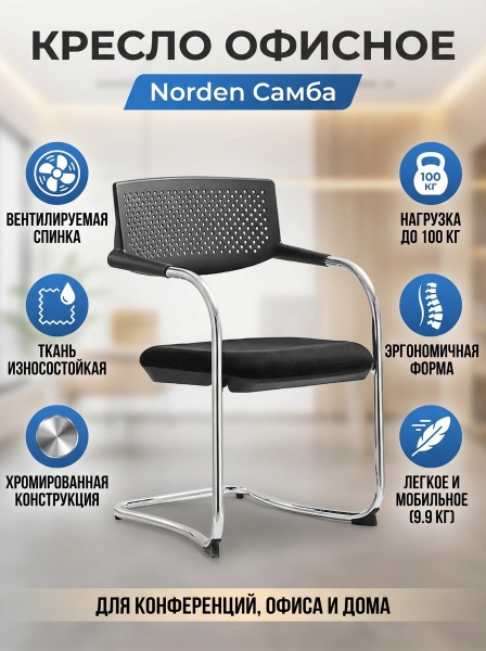 Конференц-кресло Norden Самба black CF - Обзор ТОП-10 лучших ортопедических кресел 2025 🏆: Обзор и рейтинг