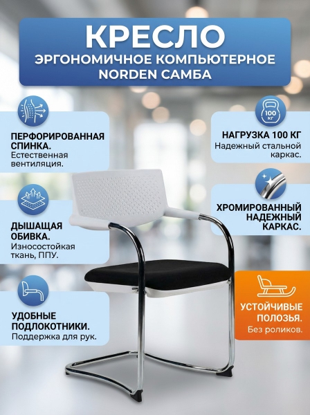 Конференц-кресло Norden Самба white CF - Обзор ТОП-10 лучших ортопедических кресел 2025 🏆: Обзор и рейтинг