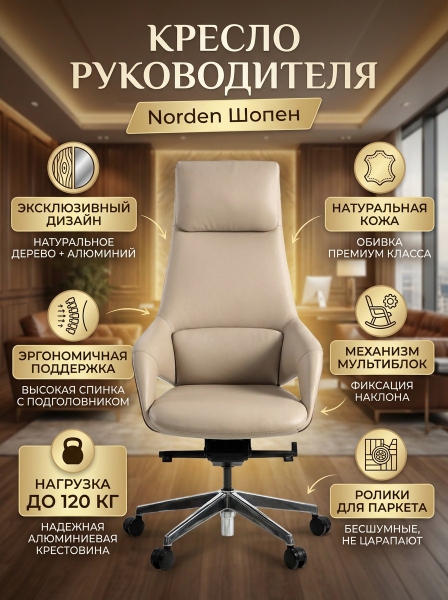 Кресло для руководителя Norden Шопен leather - Обзор ТОП-10 лучших ортопедических кресел 2025 🏆: Обзор и рейтинг