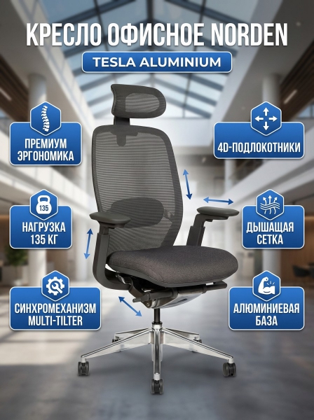 Кресло офисное Norden Tesla aluminium - Обзор ТОП-10 лучших ортопедических кресел 2025 🏆: Обзор и рейтинг