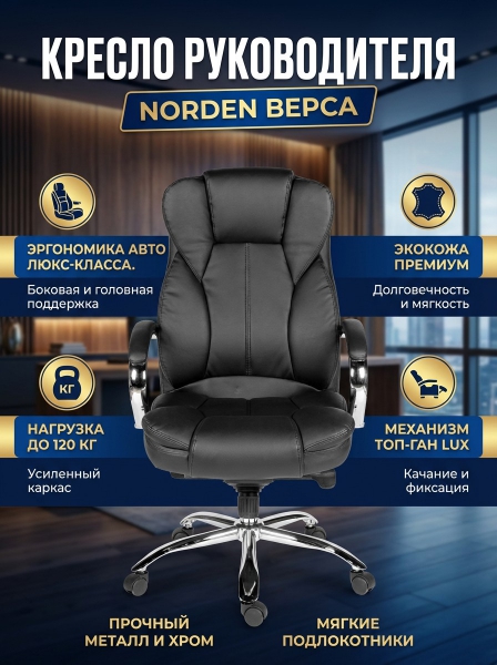 Кресло для руководителя Norden Верса - Обзор ТОП-10 лучших ортопедических кресел 2025 🏆: Обзор и рейтинг