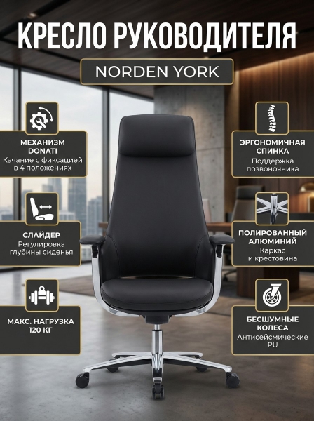Кресло для руководителя Norden York - Обзор ТОП-10 лучших ортопедических кресел 2025 🏆: Обзор и рейтинг