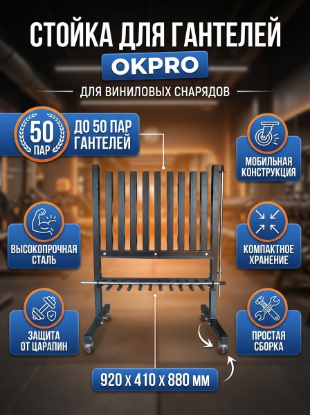 Стойка для гантелей вертикальная OKPRO до 50 пар - Преимущества