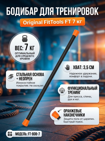 Бодибар с оранжевым наконечником Original FitTools FT 7 кг - Преимущества