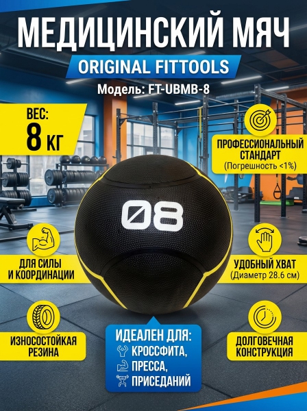 Мяч медицинский тренировочный Original FitTools FT-UBMB-8 черный - БрендСтрана бренда: КНР Премиальность бренда:Посмотреть все набивные мячи (медицинболы) Original FitTools (12) Мяч медицинский тренировочный Original FitTools FT-UBMB-8 черный - Характеристики