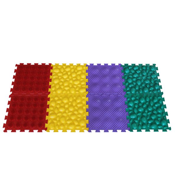 Микс состоит из поверхностей мягкой и средней жёсткости, что гарантирует не только качественную тренировку мышц стопы и голени, но и развитие мелкой моторики и мышления.