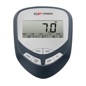 Показания консоли: - профиль; - время; - дистанця; - скорость; - калории; - обороты в мин.; - пульс; - Ватты; - фитнес-тест (Recovery); - фитнес-оценка; - жироанализатор (Body Fat); - индекс массы тела (BMI).