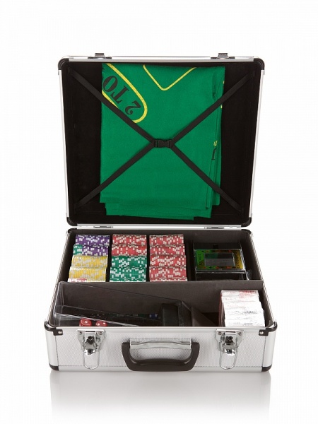Помимо игры в покер, набор предусматривает также и блэк-джек: 6 колод карт, фишки с номиналом от 1 до 1000, игральные кости, кнопка дилера — и это еще не всё! В комплекте вы найдете шафл-машинку и башмак для раздачи карт, а также 6 акриловых подставок под фишки! Когда у вас появится этот покерный набор, вы по-новому ощутите вкус игры!