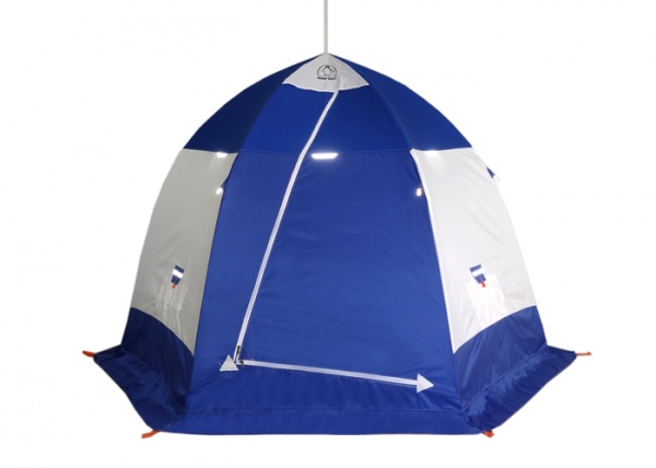 Палатка-зонт для зимней рыбалки Пингвин Пингвин 2 (1-сл.) с дышащим верхом - ОписаниеЗимняя палатка "Пингвин 2 с дышащим верхом (1-сл.)" на сегодняшний день является одной из самых популярных продаваемых моделей! Верхняя часть (шапка) данного тента изготавливается из смесовой дышащей ткани СТ-1, что позволяет отводить из палатки излишнюю влагу, в то же время ткань СТ-1 имеет водомаслоотталкивающую пропитку. Этот размер, при своем небольшом весе, позволяет передвигаться по льду не собирая палатку, в то же время, установив палатку на растяжки и присыпав юбку снегом, можно достаточно комфортно расположиться с вещами и оборудовать 2-3 лунки. В тенте имеется форточка в виде молнии на крыше, два кармана в верхней части тента под снасти и два сдвоенных кармана с сеткой в нижней части тента. Основной цвет белый с цветной крышей, порогами и дверью, снаружи имеются светоотражающие элементы, что очень важно для безопасности на льду в темное время суток. Удобный фирменный чехол позволяет свободно уложить после рыбалки даже обмерзшую палатку! Также мы рекомендуем укрепить палатку растяжками, независимо от наличия ветра.