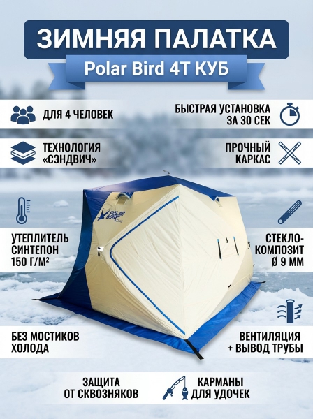 Зимняя палатка для рыбалки Polar Bird 4Т - ДоставкаДоставка по Москве: бесплатно, 1-2 дняДоставка по Санкт-Петербургу: бесплатно, 2-3 дня Доставка по России: стоимость уточняйте у оператора. Зимняя палатка для рыбалки Polar Bird 4Т - Отзывы5.0
