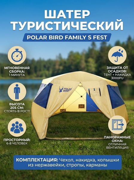 Палатка летняя Polar Bird Family S Fest - БрендСтрана бренда: Россия Страна производства: Россия Премиальность бренда:Палатка летняя Polar Bird Family S Fest - Характеристики