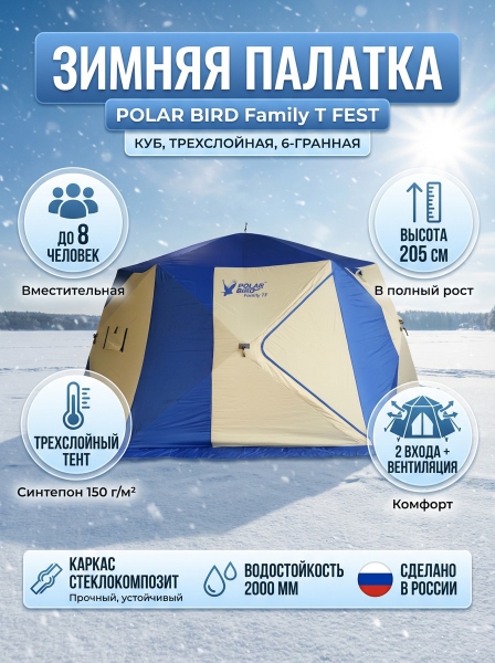 Палатка для зимней рыбалки Polar Bird Family T Fest - БрендСтрана бренда: Россия Страна производства: Россия Премиальность бренда:Палатка для зимней рыбалки Polar Bird Family T Fest - Характеристики