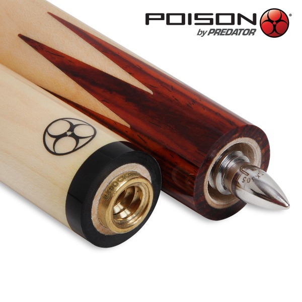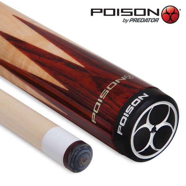 Дизайн с зеркальным рисунком зубьев в верхней и нижней частях турняка киев Anthrax символизирует острую бескомпромиссную игру. Изготовленный из скалистого канадского клена фирменный шафт Venom² соединяется с турняком с помощью стыка Bullet™, который входит в систему стыков Uni-Loc® компании Predator Group. На стакане из ударопрочного материала Thermax™ установлена наклейка Sarin™, разработанная известным производителем бильярдных наклеек Tiger Products специально для киев Poison.