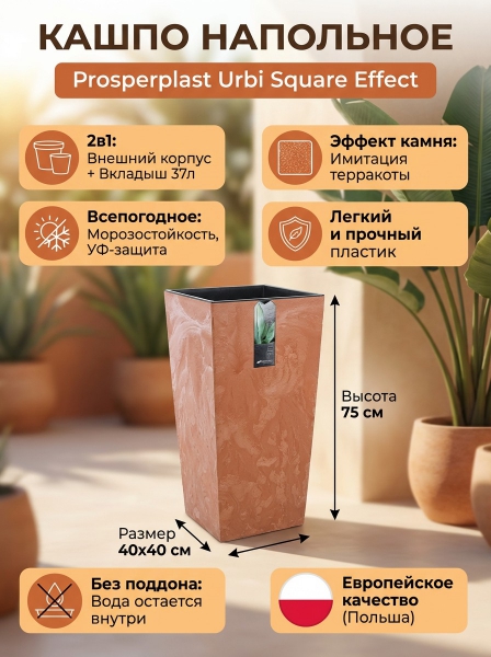Кашпо для цветов Prosperplast Urbi Squere Effect DURS400E-R624 терракотовый - Преимущества