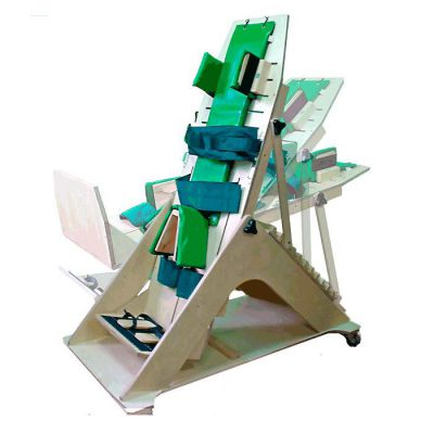 Крепления для стоп, тазобедренного и грудного отделов, на голени, абдуктор, головодержатели регулируются по высоте и ширине. Голова фиксируется подголовниками. Регулируемый по высоте и жёсткости абдуктор, 2-х видов. В комплект входит регулируемая по высоте столешница. Опора выполнена из дерева. Мягкие элементы на поролоне, обтянуты кожей.