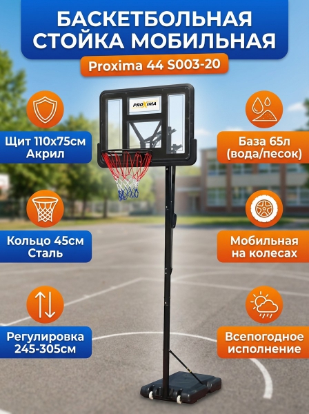 Мобильная баскетбольная стойка 44" Proxima S003-20 - Обзор ТОП-10 лучших баскетбольных стоек 2025 🏆: Обзор и рейтинг