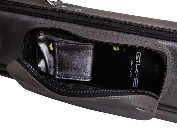 Наружная поверхность кейса отделана водоотталкивающим виниловым материалом. Кейс включает внешние отделения на молнии - одно для удлинителя кия, второе - для аксессуаров с изолированным отсеком для мела, что предохраняет остальные аттрибуты бильярдной игры, хранимые в кейсе, от загрязнения.