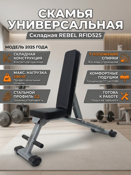 Скамья универсальная складная REBEL RFID525 - БрендСтрана бренда: КНР Премиальность бренда:Скамья универсальная складная REBEL RFID525 - Характеристики