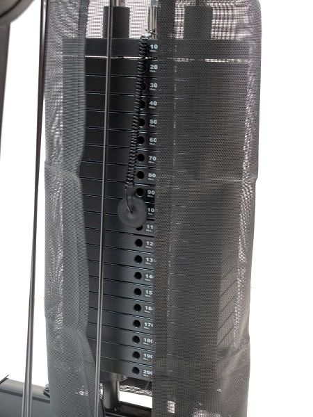 Тренажёр оснащён 20 металлическими пластинами весом по 4.5 кг (общий вес стека – 90 кг). Пластины изготовлены из высококачественного металла и покрыты специальной защитной краской, внутри пластин установлены пластиковые втулки для более плавного и бесшумного хода весового стека во время выполнения упражнений.