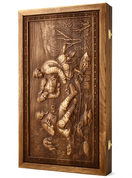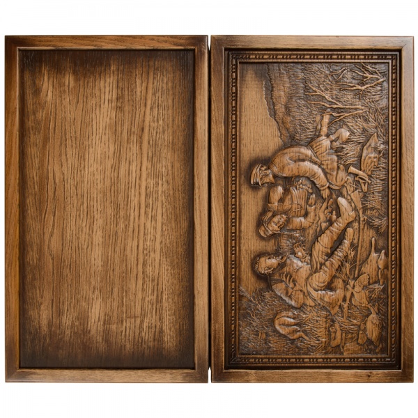 Нарды Сенеж патина РФН WGN-Priv-K «Охотники на привале» - ОписаниеНарды Сенеж "Охотники на Привале" изготовлены из массива дуба, тяжёлые и прочные.
