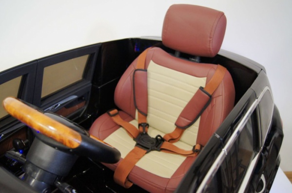 Детский электромобиль Rivertoys Mercedes А999АА черный - ОписаниеДетский электромобиль Rivertoys А999АА черный рассчитан на детей 3-8 лет. Сделан по лицензии концерна. Модель с интерактивными функциями: возможно закачивать фото и видео, встроенная сенсорная панель. Ребенок может управлять автомобилем самостоятельно или это могут делать родители при помощи пульта. Особенности: большое кожаное сиденье с регулируемым наклоном спинки, регулируемым подголовником включается при помощи кнопки руль с электроусилителем, с отделкой под натуральное дерево для управления предусмотрено две педали - ускорения и торможения на приборной панели расположен спидометр оборудован коробкой автомат два скоростных режима вперед и одна назад плавно стартует, развивает скорость до 3-5 км/ч паркотник включается отдельным рычагом на руле, индикатор на панели приборов, реагирующий на приближение объектов (автоостановка) колеса из каучука, с передними и задними амортизаторами каждое колесо на индивидуальном моторе и рычаге оборудован сенсорным дисплеем с воспроизведением фото, аудио, видео родительский пульт с индивидуальной настройкой, оборудован ЖК-дисплеем есть индикатор заряда батареи дверцы, багажник и бардачок открываются
