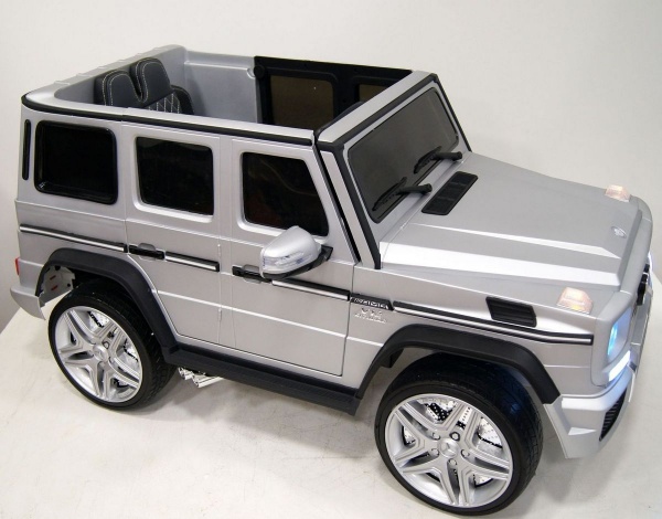 Детский электромобиль Rivertoys Mercedes G65 AMG 4WD серый глянец - ОписаниеДетский электромобиль Mercedes G65 AMG 4WD – представитель легендарных Гелендвагенов, практически точная копия автомобиля AMG от Mercedes Benz. Как и взрослые прототипы этой марки, этот детский автомобиль отличается брутальным внешним видом. Комфорт, безопасность, устойчивость и способность преодолевать препятствия – главные характеристики этого авто. Пружинные амортизаторы и каучуковые колеса значительно смягчают ход электрической машины, за счет них умеренное бездорожье; небольшие ямки, кочки и бордюры практически не ощущаются и не оказывают вредного влияния на позвоночник.