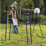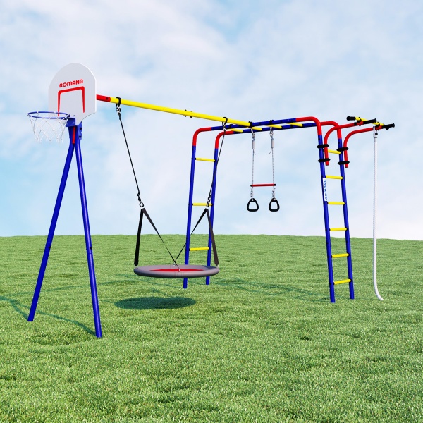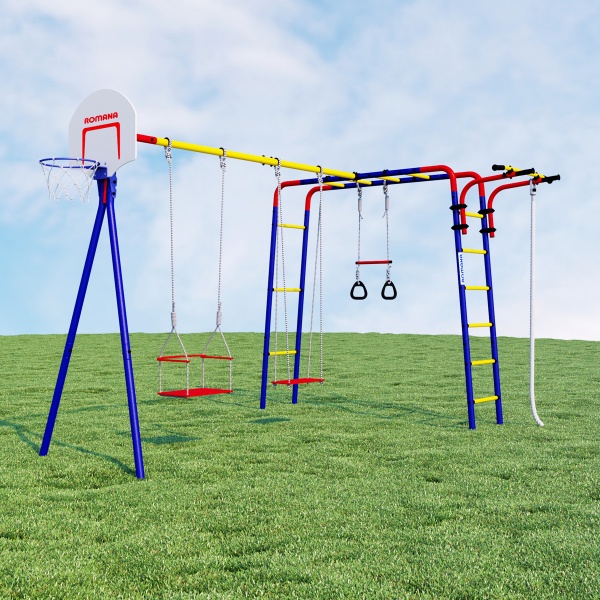 Спортивно-игровой комплекс Romana Акробат R.103.19.04 - ОписаниеСомневаетесь? - Посмотрите рейтинг ТОП-10 по категории «Шведские стенки»Дачный спортивный комплекс «Акробат» — многофункциональный тренажер для дачи или загородного дома, с большим количеством элементов. С помощью комплекса«Акробат» дети развивают координацию, ловкость и силу, а также могут просто весело проводить время на воздухе во время поездок на природу. С таким набором тренажеров малыши за лето станут настоящими акробатами! Рукоход, турник, канат для лазания, кольца и трапеция, а также щит для игры в баскетбол — мы учли все любимые занятия маленьких непосед. Турник можно перемещать по вертикали, он закрепляется хомутами на любой высоте лестницы рукохода. Все оптимизируется под желание владельца. Навеска устойчива к атмосферному воздействию и в летнее время ее можно не заносить в дом после игр. Конструкция тестируется нагрузкой в 200 кг, рекомендованная нагрузка — до 100 кг. Доставить конструкцию в разобранном виде можно даже на легковом автомобиле. Сборка также осуществляется просто и понятно — инструкция прилагается. «Акробат» — полноценный тренировочный дачный комплекс. Приобретая его, вы можете быть уверены, что этим летом у детей будет активный и веселый досуг!