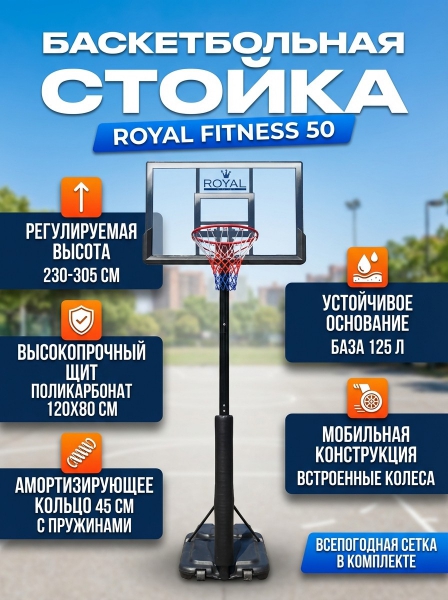 Мобильная баскетбольная стойка 50 Royal Fitness S025S - Обзор ТОП-10 лучших баскетбольных стоек 2025 🏆: Обзор и рейтинг