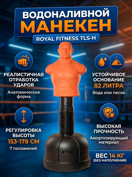 Водоналивной манекен Royal Fitness TLS-H - БрендСтрана бренда: КНР Премиальность бренда:Посмотреть все боксерские манекены герман для отработки ударов Royal Fitness (2) Водоналивной манекен Royal Fitness TLS-H - Характеристики