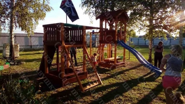 По мне, это самая лучшая детская площадка. Есть все, что нужно: и покататься на качели, и полазать на лестницах разной длины, спуститься с горки. Все это устойчиво и безопасно