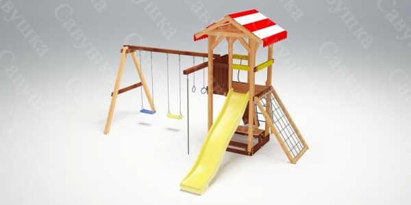 Детский городок с столиком и лавочками Савушка С-09 - ОписаниеСомневаетесь? - Посмотрите рейтинг ТОП-10 по категории «Детские игровые площадки»Детский игровой городок Савушка 9 для улицы разработан и произведен по нормам ГОСТ. Каркасные балки выполнены из бруса LVL 9х9 см. Дерево обработано лакокрасочным покрытием с разрешающим сертификатом для покрытия детских игровых площадок. Комплекс состоит из игровой башни с крышей, пластиковой горк-волны и столика с двумя лавочками.