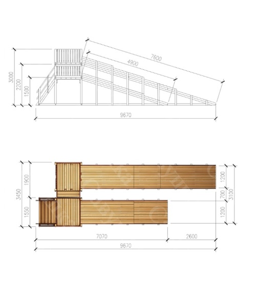 Зимняя горка с двумя скатами Савушка Зима wood-7 СЗw-7 - ОписаниеСомневаетесь? - Посмотрите рейтинг ТОП-10 по категории «Детские горки»Решились купить зимнюю горку для детской площадки, но переживаете, насколько будет безопасно детишкам на ней кататься? Предлагаем простую и очень надежную модель с перилами. Идеальная двухфазовая шлифовка исключает любые заусенцы — доски безупречно гладкие, а концы и края перил специально закруглены — никаких болезненных травм даже при падении. Конструкция разработана и произведена согласно ГОСТ 52169-2012. Силовые детали — из клееного бруса 90ммх90мм. Силовые балки для подвесного оборудования из бруса LVL 90ммх90мм. Качество древесины согласно ГОСТ 9885-95.2. Дерево без окраски.