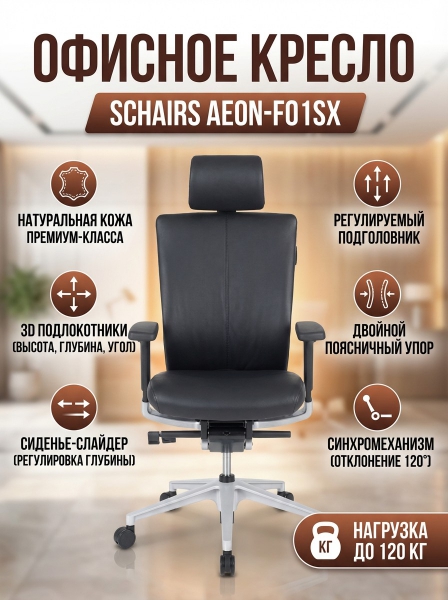 Офисное кресло SCHAIRS AEON-F01SX - ОписаниеСомневаетесь? - Посмотрите рейтинг ТОП-10 по категории «Ортопедические кресла»Офисное компьютерное кресло премиум-класса AEON-F01SX в обивке из натуральной кожи.