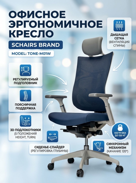 Офисное кресло SCHAIRS Tоnе-M01W - Обзор ТОП-10 лучших ортопедических кресел 2025 🏆: Обзор и рейтинг