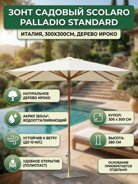 Зонт профессиональный садовый Scolaro Palladio Standard натуральный, слоновая кость - ДоставкаДоставка по Москве: бесплатно, 1-2 дняДоставка по Санкт-Петербургу: бесплатно, 2-3 дня Доставка по России: стоимость уточняйте у оператора. Зонт профессиональный садовый Scolaro Palladio Standard натуральный, слоновая кость - Отзывы0.0