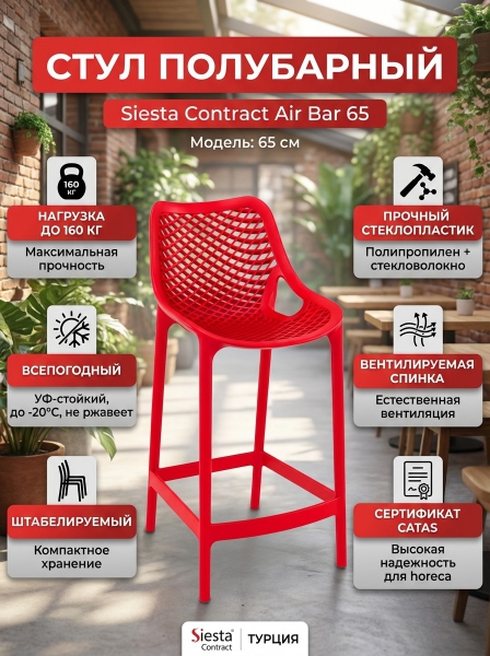 Стул пластиковый полубарный Siesta Contract Air Bar 65 - ИнструкцияСтул пластиковый полубарный Siesta Contract Air Bar 65 - БрендСтрана бренда: Турция Страна производства: Турция Премиальность бренда:Стул пластиковый полубарный Siesta Contract Air Bar 65 - Характеристики