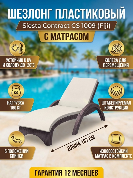 Шезлонг пластиковый Siesta Contract GS 1009 (Fiji) с матрасом - ДоставкаДоставка по Москве: бесплатно, 1-2 дняДоставка по Санкт-Петербургу: бесплатно, 2-3 дня Доставка по России: стоимость уточняйте у оператора. Шезлонг пластиковый Siesta Contract GS 1009 (Fiji) с матрасом - Отзывы0.0