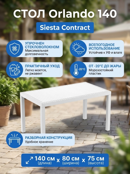 Стол пластиковый Siesta Contract Orlando 140 - ИнструкцияСтол пластиковый Siesta Contract Orlando 140 - БрендСтрана бренда: Турция Страна производства: Турция Премиальность бренда:Стол пластиковый Siesta Contract Orlando 140 - Характеристики