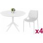 Комплект пластиковой мебели Siesta Contract Sky 105 Air - ОписаниеКомплект Sky Air состоит из круглого стола и четырех стульев. Круглый пластиковый стол Sky со столешницей из погодостойкого пластика и каркасом из металла. Стул Air с перфорированными сиденьем изготавливается из полипропилена, упрочненного стекловолокном, полученным с использованием новейшего поколения технологий формования пластмасс под давлением.