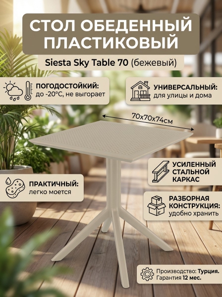 Стол пластиковый Siesta Contract Sky Table 70 - ИнструкцияСтол пластиковый Siesta Contract Sky Table 70 - БрендСтрана бренда: Турция Страна производства: Турция Премиальность бренда:Стол пластиковый Siesta Contract Sky Table 70 - Характеристики