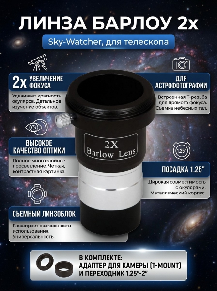 Линза Барлоу Sky-Watcher 2x 1,25" с адаптером для камеры - Преимущества