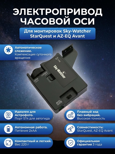 Электропривод часовой оси для телескопа Sky-Watcher для монтировок StarQuest и AZ-EQ Avant - Преимущества